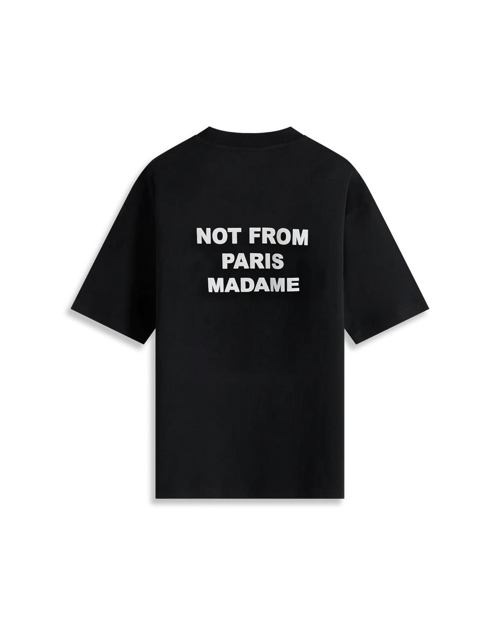 Printed slogan “NOT FROM PARIS MADAME” on the chest and back